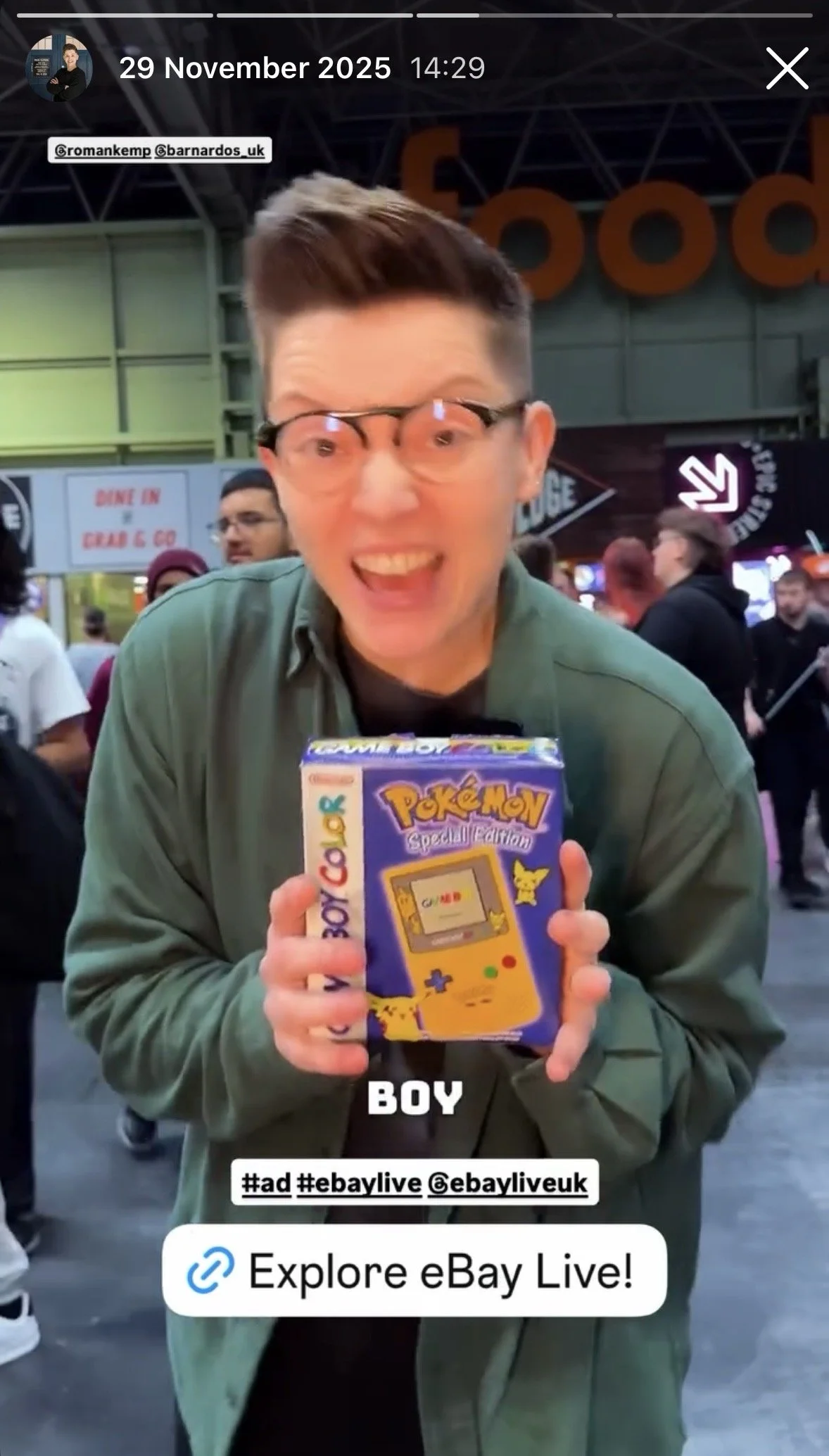 eBay Live approached me to promote the platform at their activation at Birmingham Comic Con. I was given a budget to bid on an item being sold at the activation that day and document the experience. I captured the excitement in an Instagram Reel, as well as several stories throughout the day linking to the live streams taking place at the show.